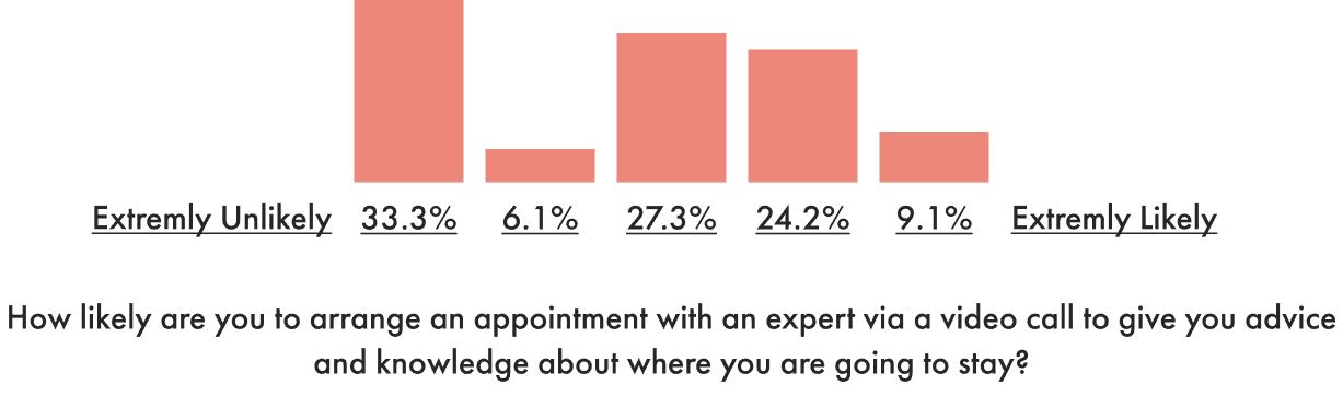 One interesting response we had was that a third of people said that they would be extremely unlikely to book a video call with a local expert, this is something we obviously needed to talk about more in our user interviews.