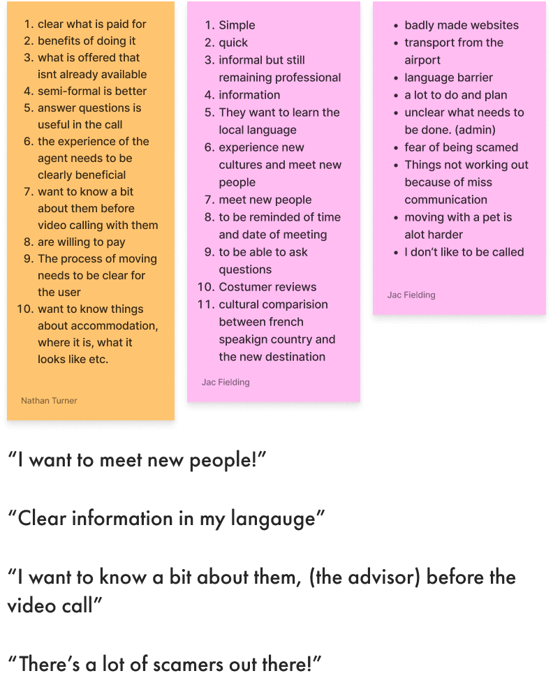 Then as went further into this matter in the user interviews we found out that people actually were willing to have a video call with a local expert, but they wanted to know a little bit more about that person first.